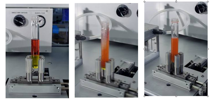 Evaporate and Inert This automated sliding devices working in conjunction with the robot gripper can evaporate the samples and inject them with an inert gas in preparation for crimping. This allows inert vials to be prepared without the necessity to pierce the cap septa. |